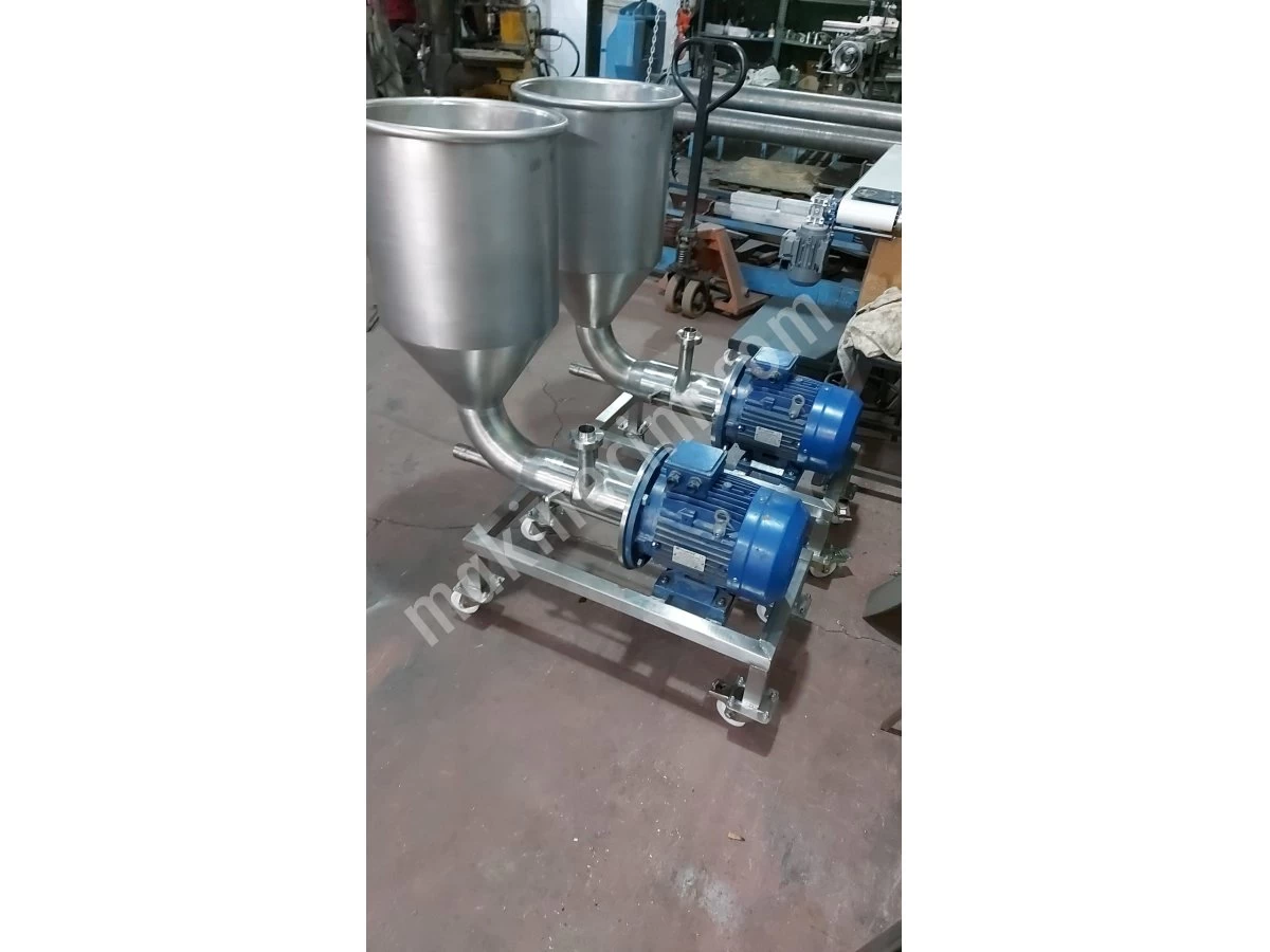 Likit ve toz/katı ürünlerin aynı anda hatta alınarak, topaksız ve tam homojen karıştırılmasını sağlayan, kabul hazneli inline tip yüksek kesme (high shear) mikser / homojenizatör. Ürün, özellikle gıda, kozmetik, kimya ve ilaç yardımcı proseslerinde dozajlama ve karışım için tasarlanmıştır.